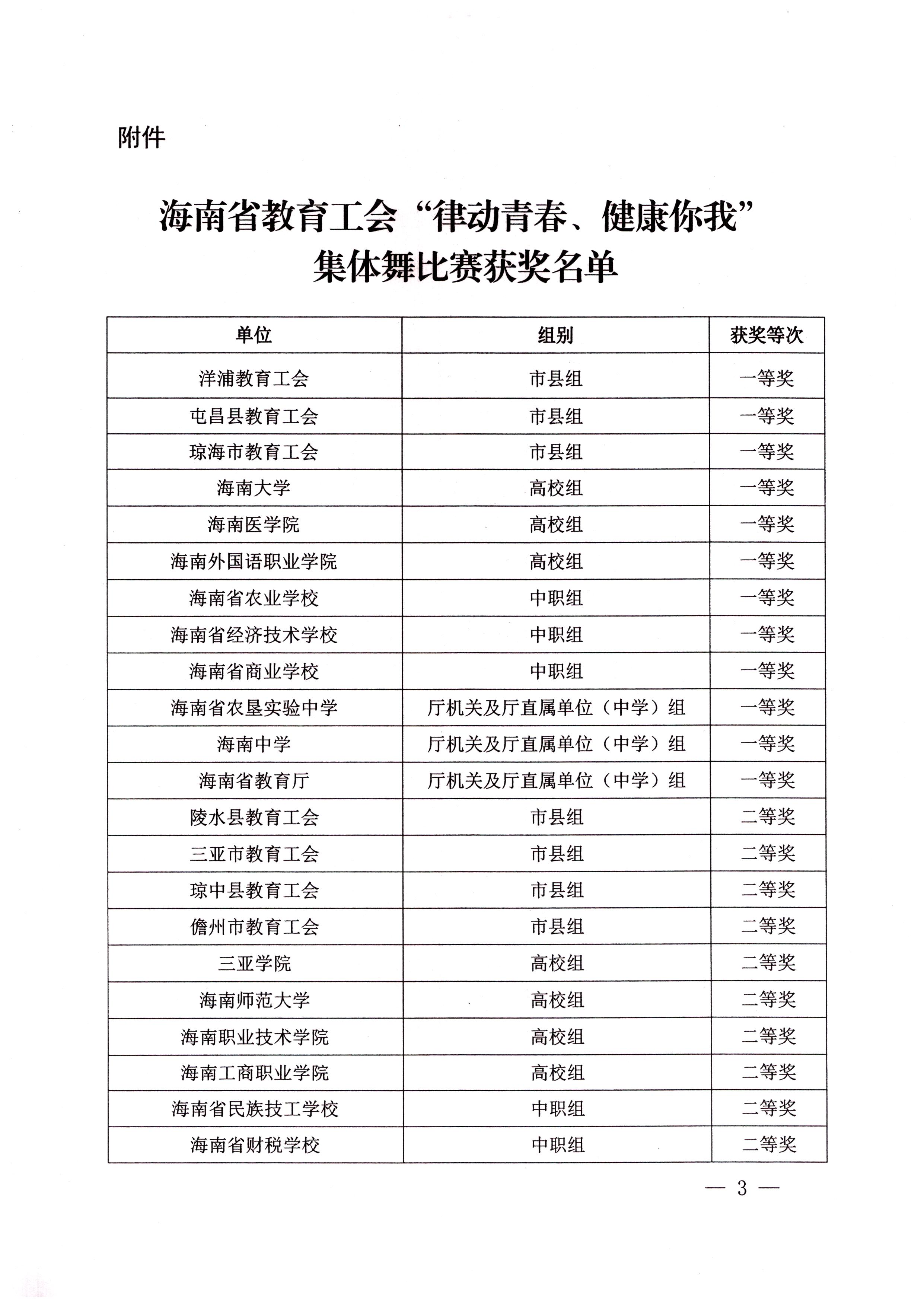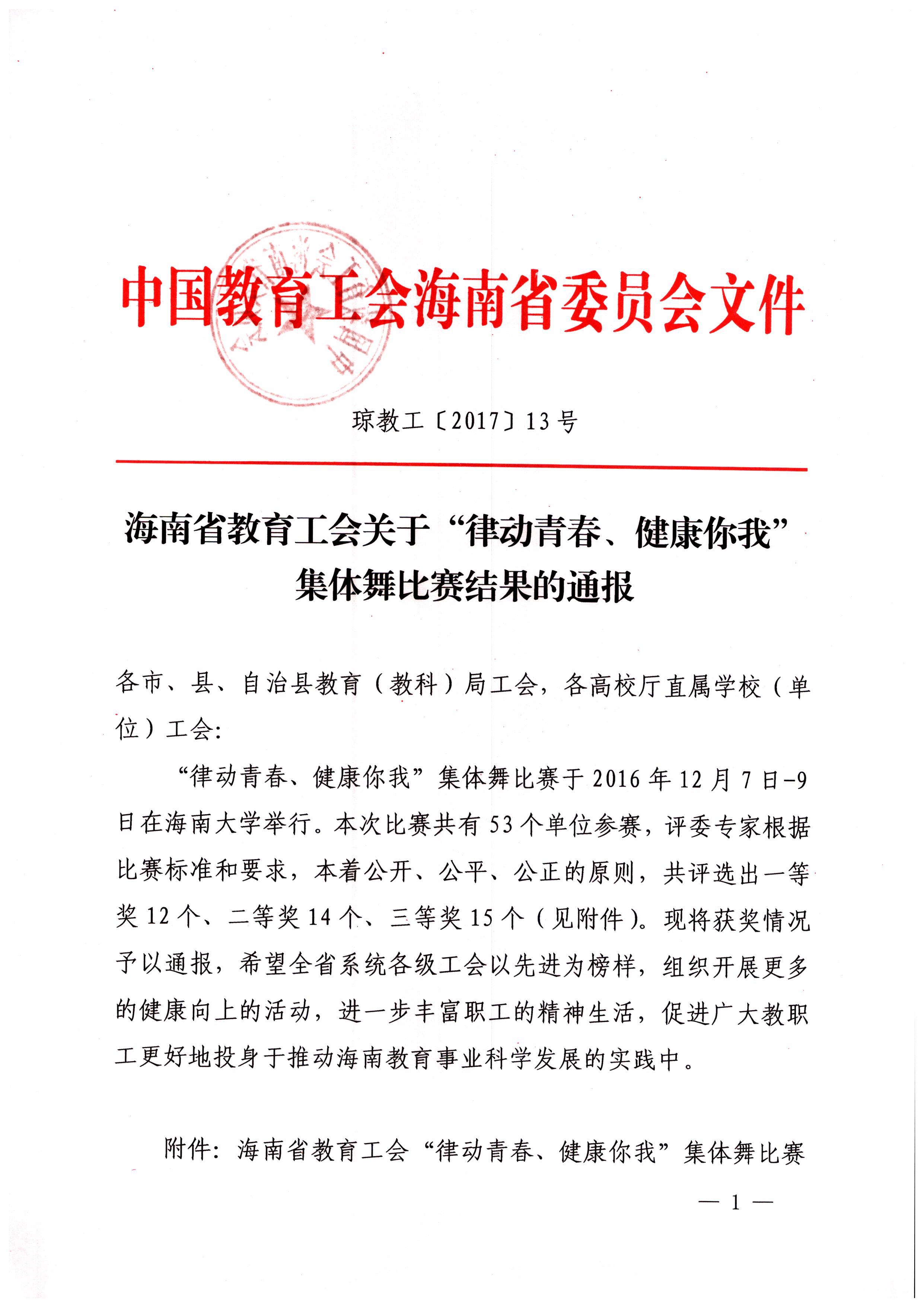 海南省教育工会关于“律动青春、健康你我”集体舞比赛结果的通报