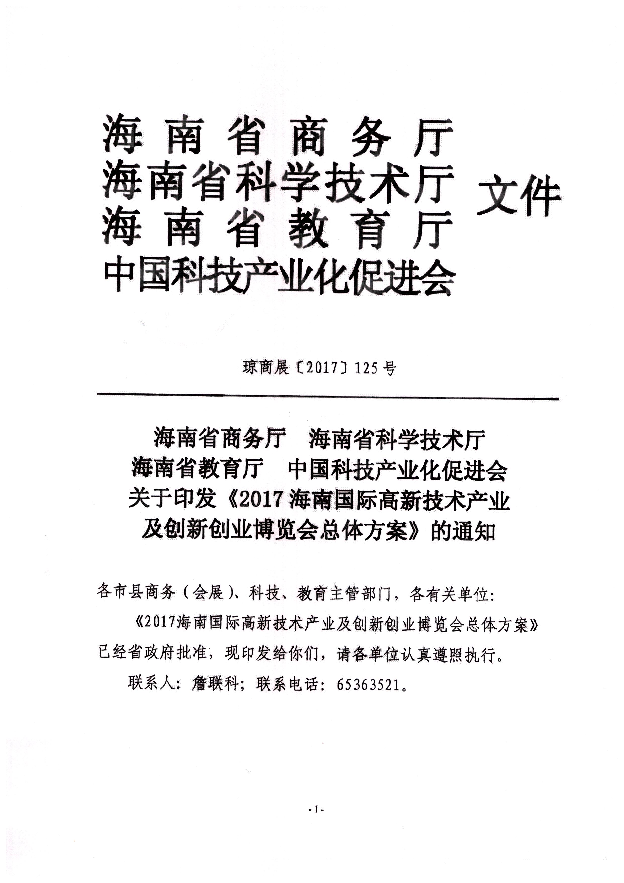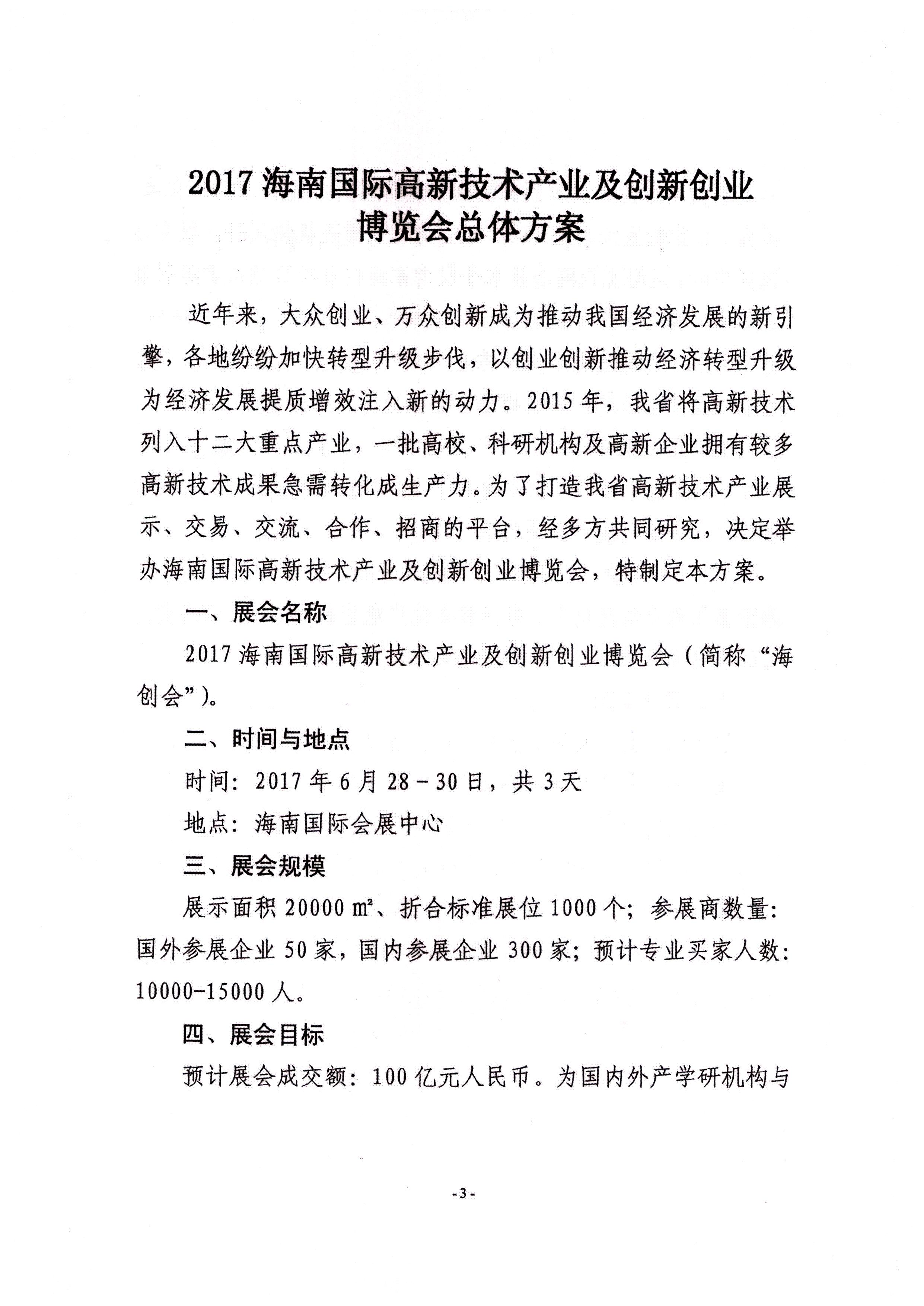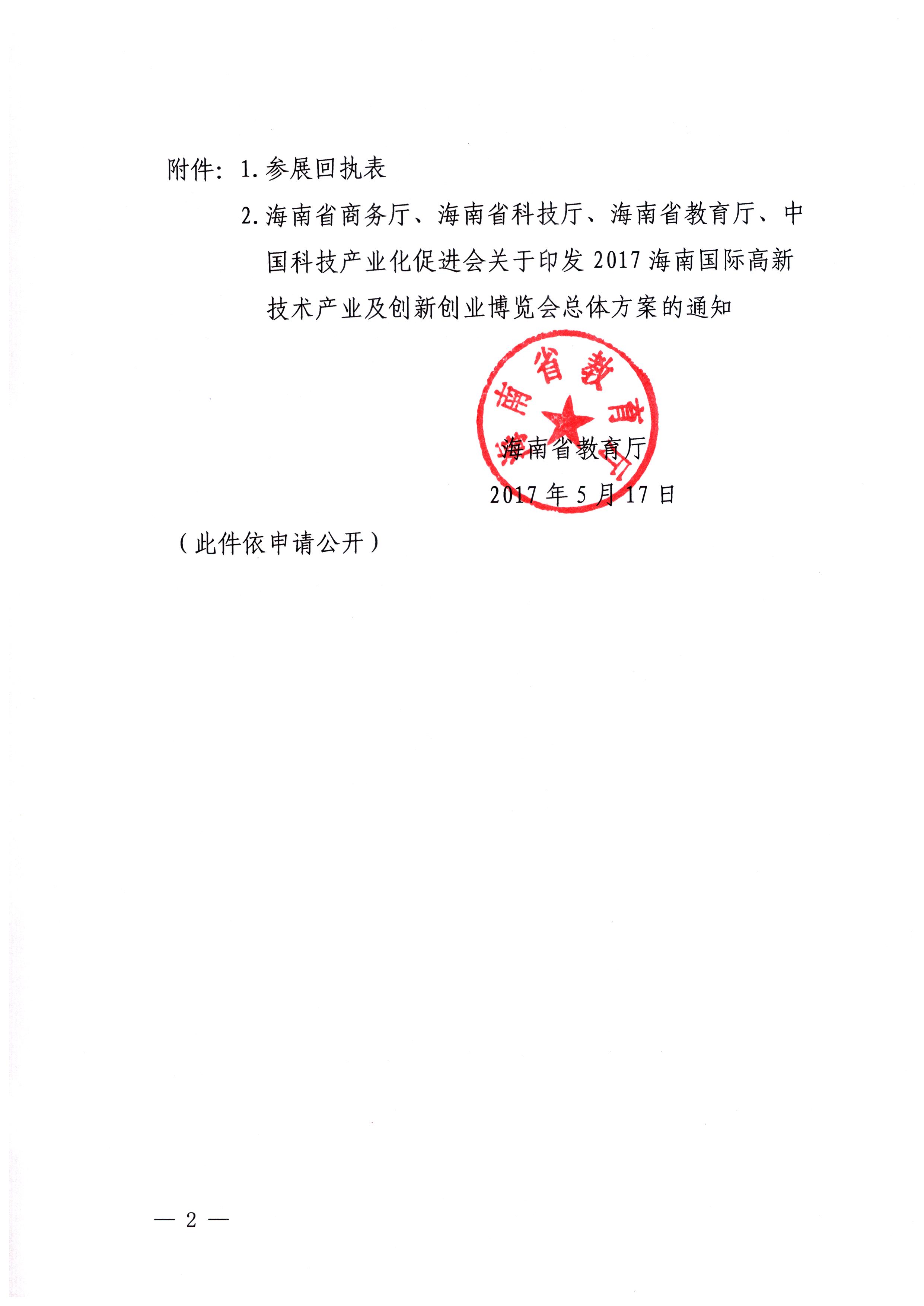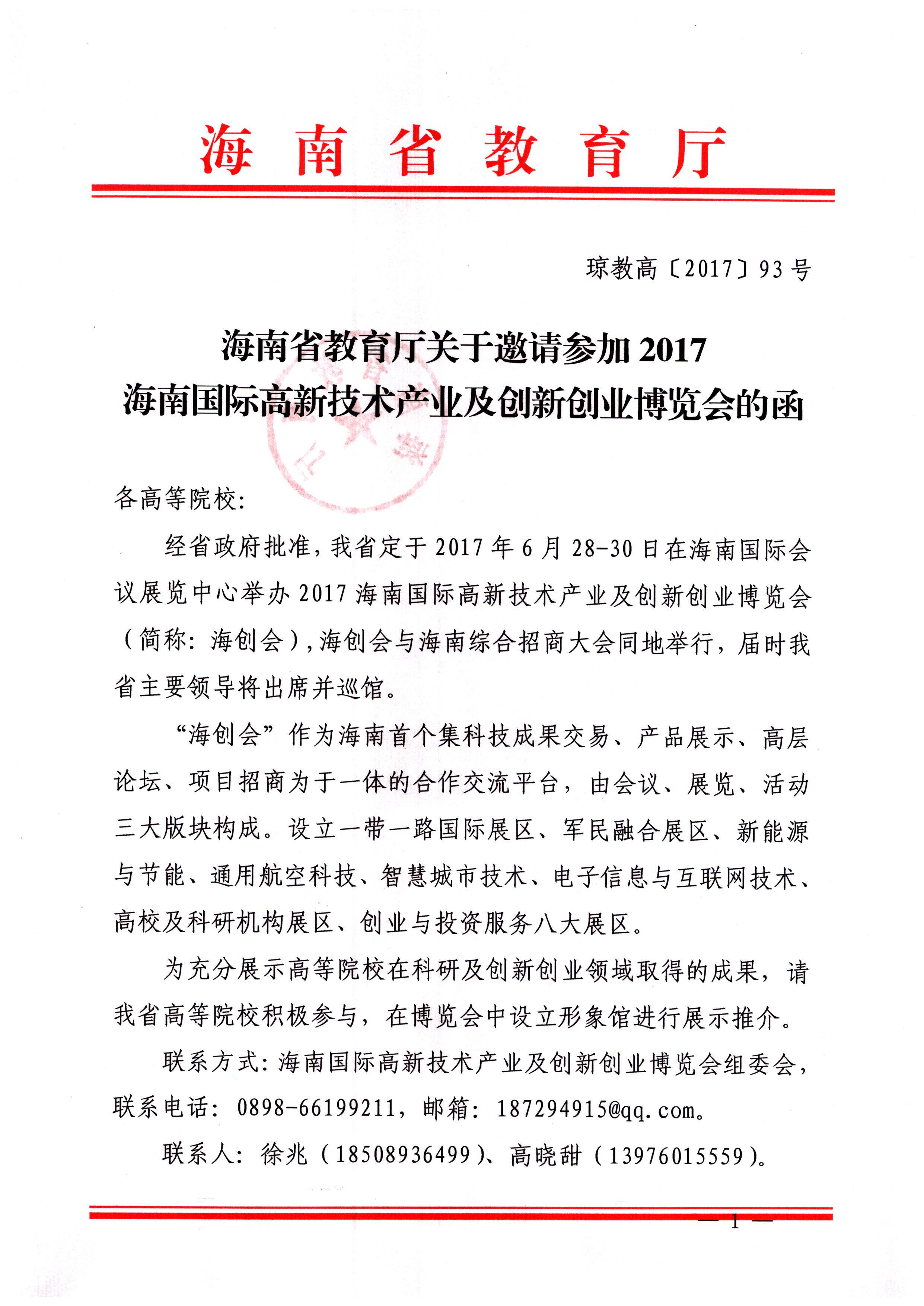 海南省教育厅关于邀请参加2017海南国际高新技术产业及创新创业博览会的函