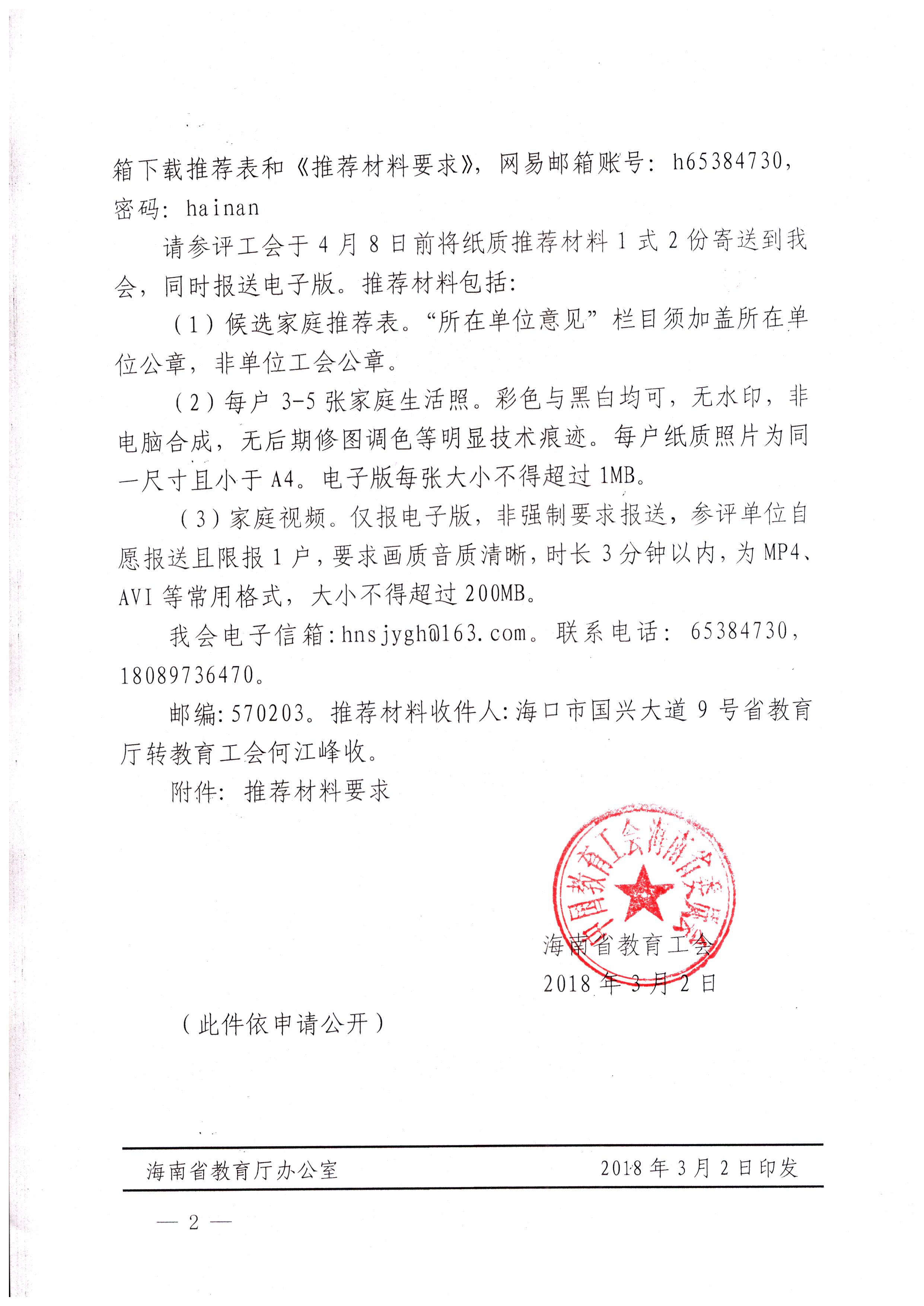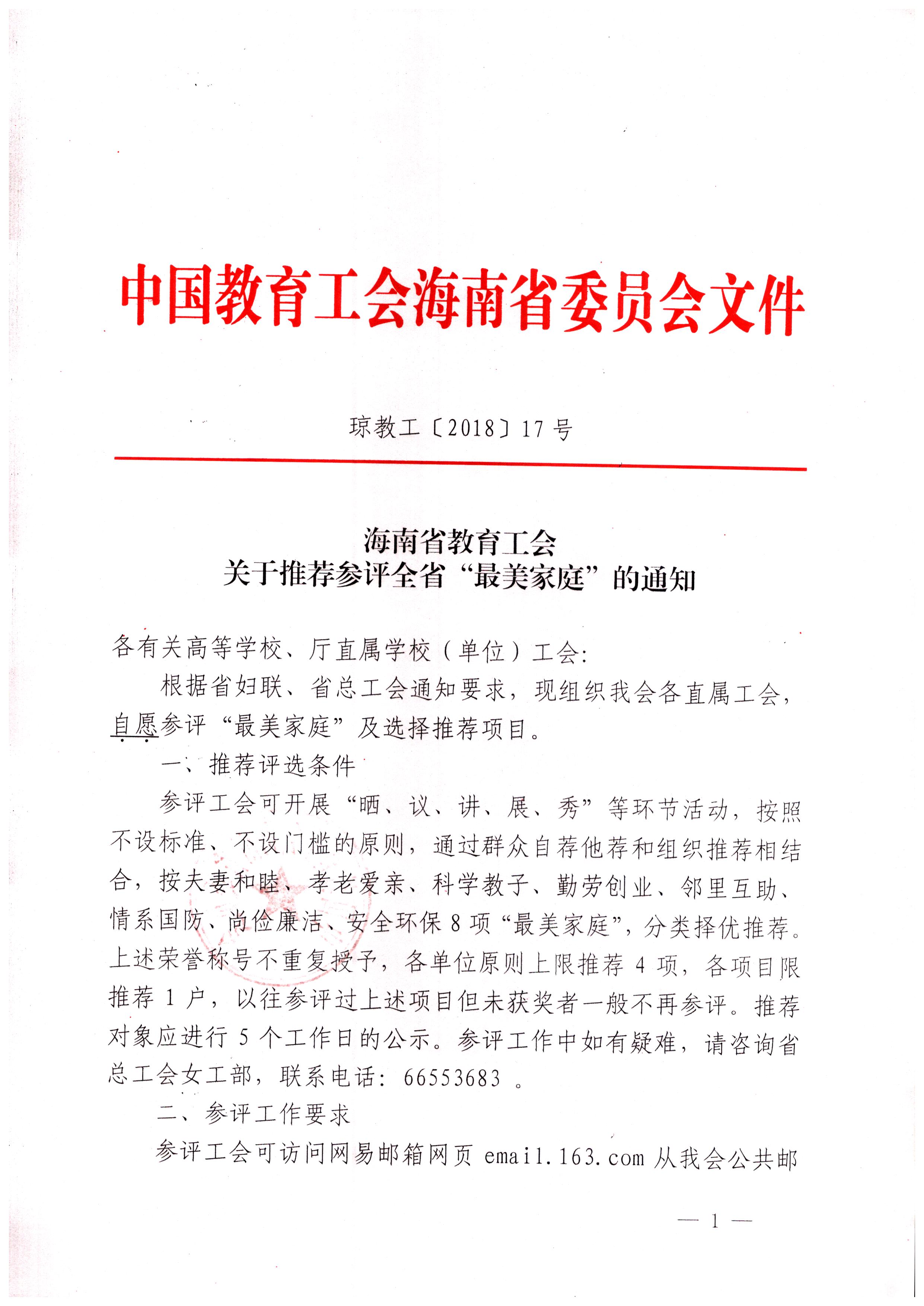 海南省教育工会关于推荐参评全省“最美家庭”的通知