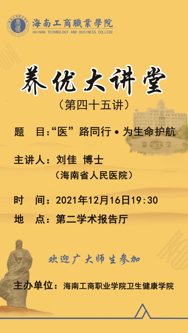 第四十五讲“养优大讲堂”将于2021年12月16日晚上19:30在第二学术报告厅隆重开讲!