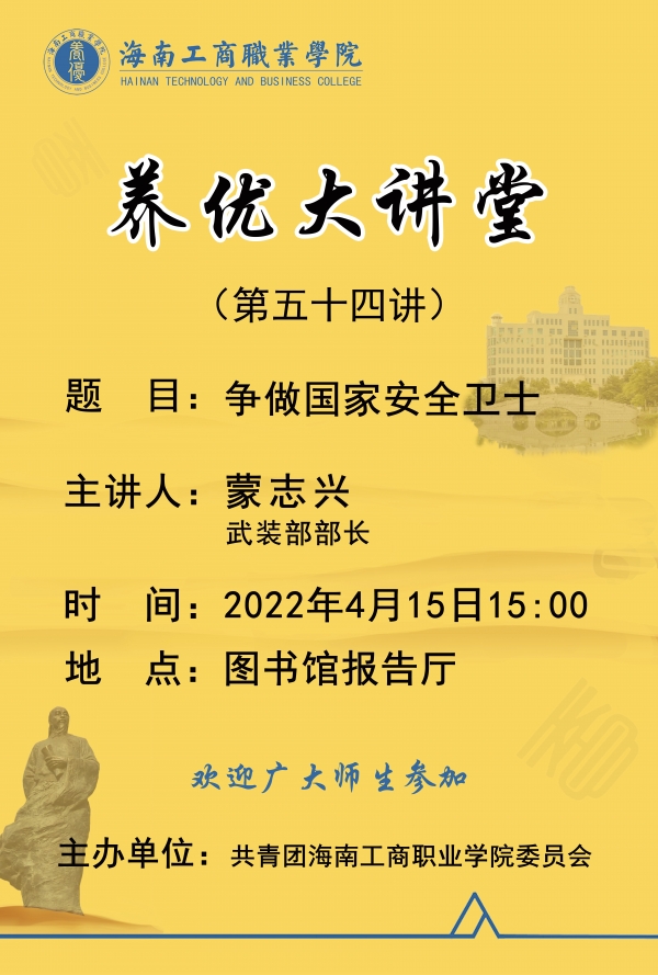 第五十四讲“养优大讲堂”将于2022年4月15日15:00在图书馆报告厅隆重开讲!