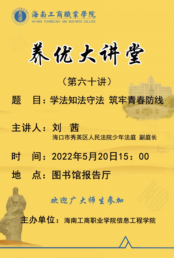 第六十讲“养优大讲堂”将于2022年5月20日15:00在图书馆报告厅开讲!