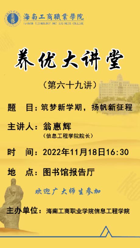 第六十九讲“养优大讲堂”将于2022年11月18日16:30在图书馆报告厅开讲!
