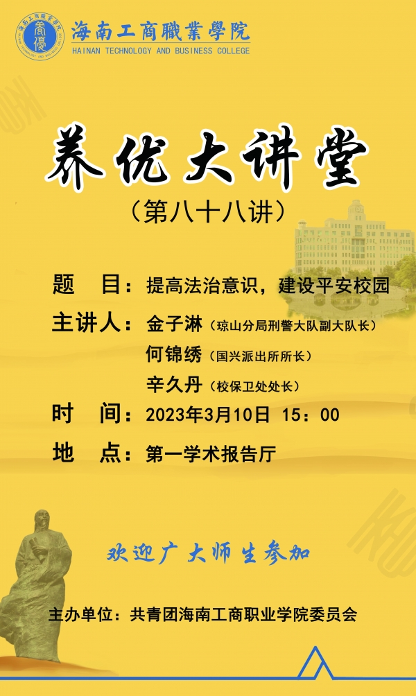本期大讲堂的主题为:《提高法治意识,建设平安校园》