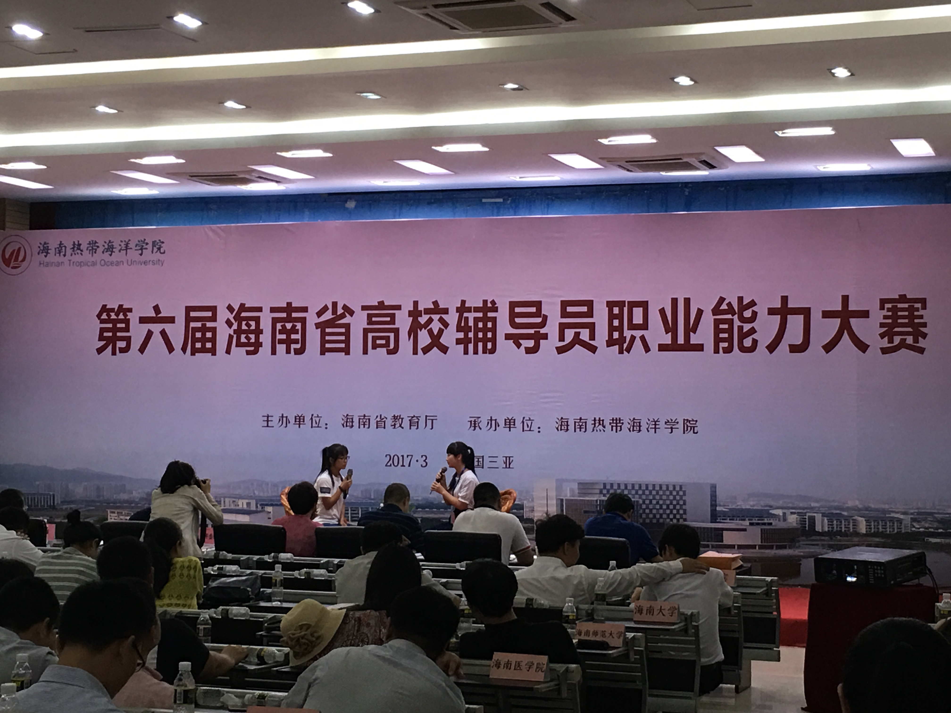 由海南省教育厅主办的2017年第六届海南省辅导员职业能力大赛于3月22日至24日在海南热带海洋学院举行,永利官网根据相关文件要求,委派旅游艺术学院党支部书记衣彦威担任评委。经过校内的层层选拔,永利官网派信息工程学院辅导员羊美清老师参加比赛。