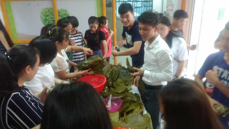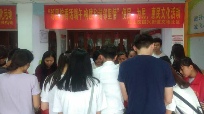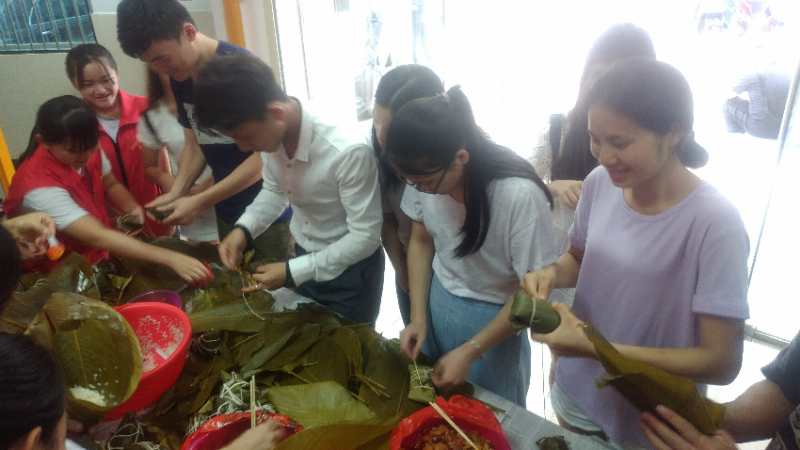 活动中同学们相互配合,你帮我递粽叶,我帮你扣绳子,忙的不亦乐乎,活动中有的同学献诗一首,有的进行书法展示,现场其乐融融。经过了一个多小时的努力,一百个粽子成功出锅,同学们将热腾腾粽子送到文坛社区困难家庭、独居老人家中,让他们感受到节日的温暖。最后,同学们纷纷表示包粽子看起来简单,但是实际操作起来却很难,但大家都很期待下一次能亲手为家人包粽子。