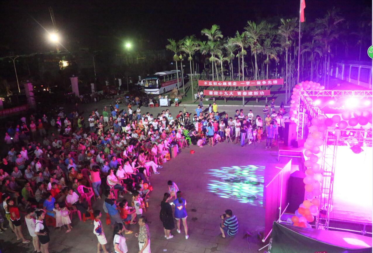 为积极贯彻落实团中央、团省委关于暑期“三下乡”社会实践活动的总体要求,6月17日,永利官网团委副书记王鹏程、团干部迟通老师和张帆老师带领暑期“三下乡”志愿者服务队47人,在海口市美兰区演丰镇群庄村开展了“青春凝聚党旗下”暑期三下乡文艺汇演社会实践活动,为当地200多名村民送上一场别开生面的文化盛宴。本次活动得到了美兰区团委和演丰镇群庄村委会的大力支持。