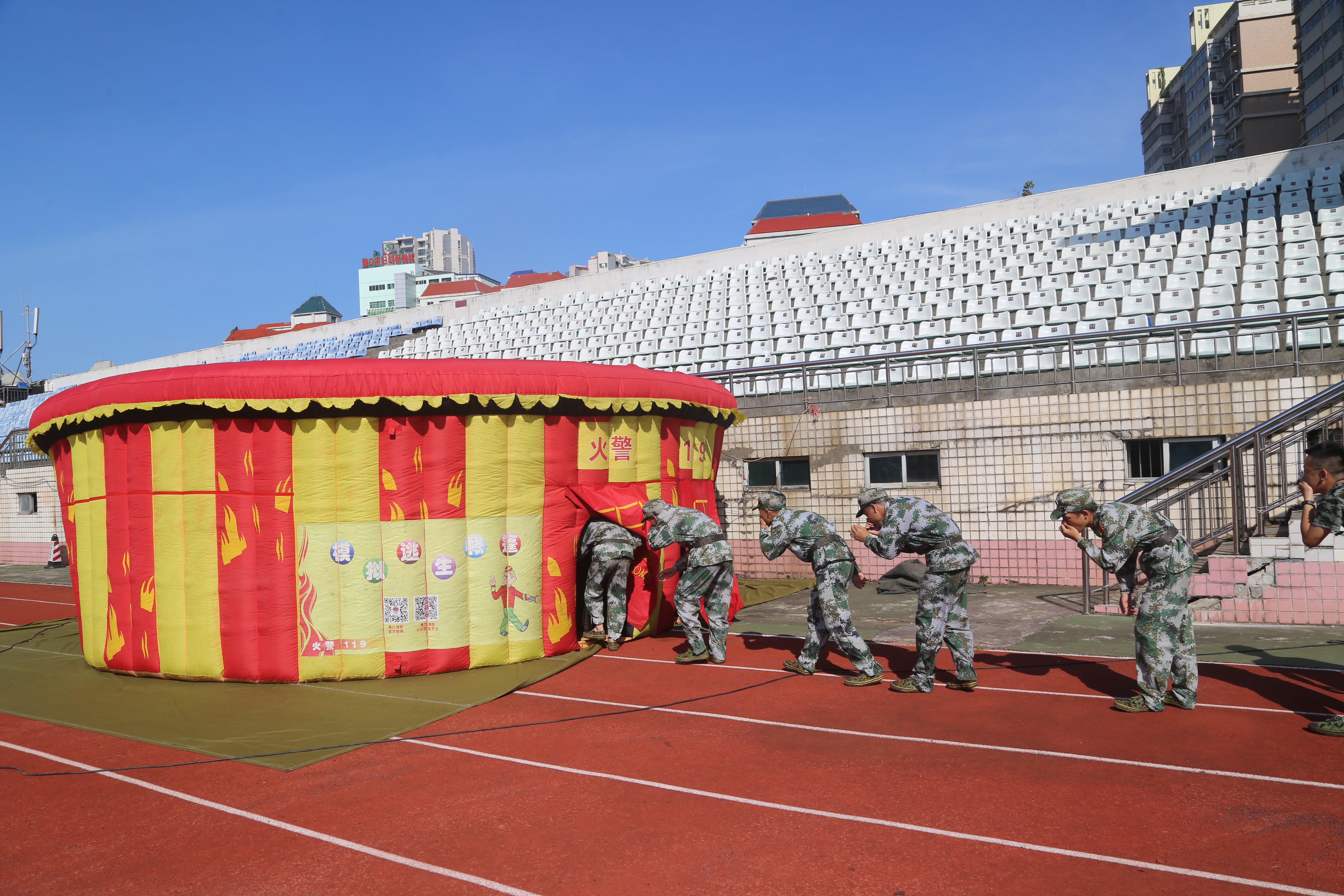 下午3点,永利官网邀请海口消防支队琼山大队的消防官兵为2017级学生支起一顶模拟逃生的帐篷。帐篷只有进出两个门口,里面漆黑一片。学生需要在没有照明、浓烟密布的情况下“逃”出火灾现场。通过模拟火灾逃生帐篷的演练,学生们不仅再次演练了用湿毛巾捂上口鼻,低下身体逃离火场的技能,还体验到了着火时自身慌乱的情绪。这种身临其境的演练让学生印象深刻。