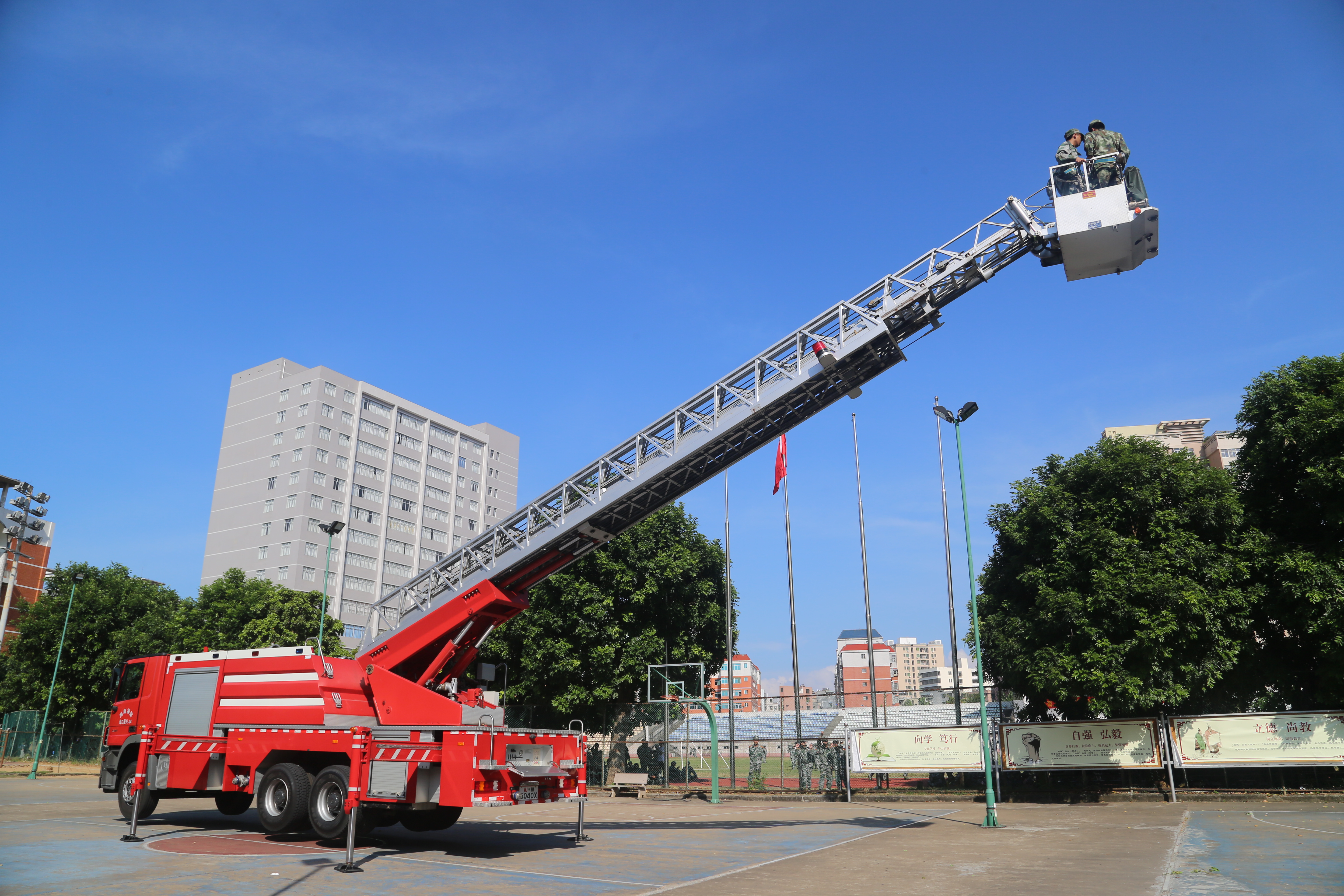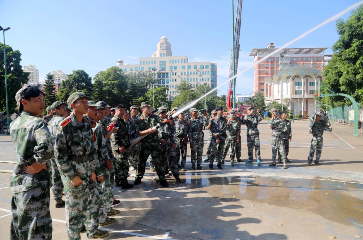 海口消防支队琼山大队还向全体新生讲授了干粉灭火器的类别、使用方法和注意事项,强调说明了各类灭火器的操作方法和适用范围,并现场为同学们演示了灭火器、云梯消防车和喷水消防车等消防设备的使用方法,邀请新生代表进行灭火工具的实践操作,通过理论与实践相结合的方式,提高了报告火警、扑救初期火灾事故和逃生自救的能力。