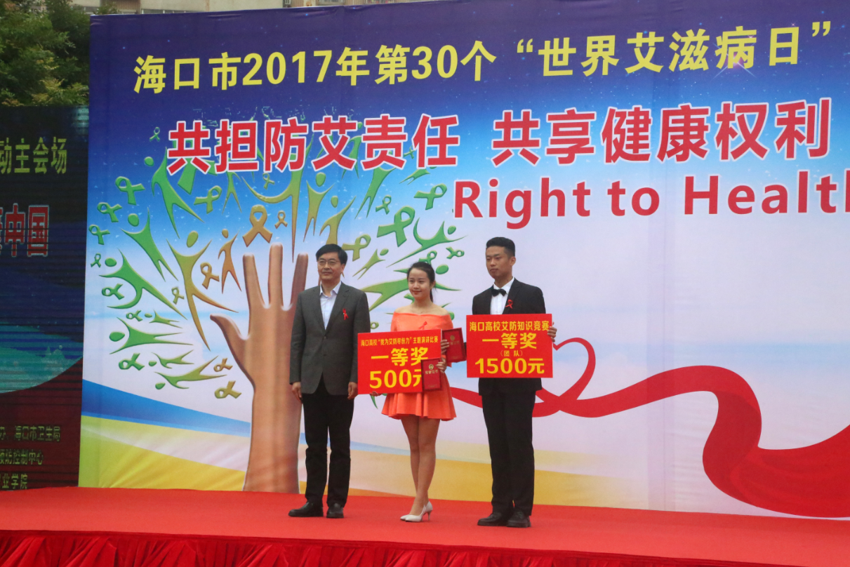 永利官网党委书记黄恒在开幕式中致辞,他强调高校艾滋病防治知识宣传教育工作依旧任重道远。希望能够以此次活动为契机,将高校大学生健康教育以及艾滋病宣传工作常态化,不断提高大学生健康防护意识,提升艾滋病防控知识认知水平。接着海口市高校学生代表以演讲的形式向全市大学生发出了“携手抗艾,你我同行”的倡议。会上对近期全市艾防“知识竞赛”、“演讲比赛”获奖者进行了通报表彰,并由在场领导们为获奖者颁发荣誉证书。最后,邓海华副市长发表重要讲话,他呼吁要实现中华民族的伟大复兴,需要我们每一个人都要作出贡献,艾滋病防控不光是卫生部门的事,大学生也要积极行动起来,为防艾做出贡献。