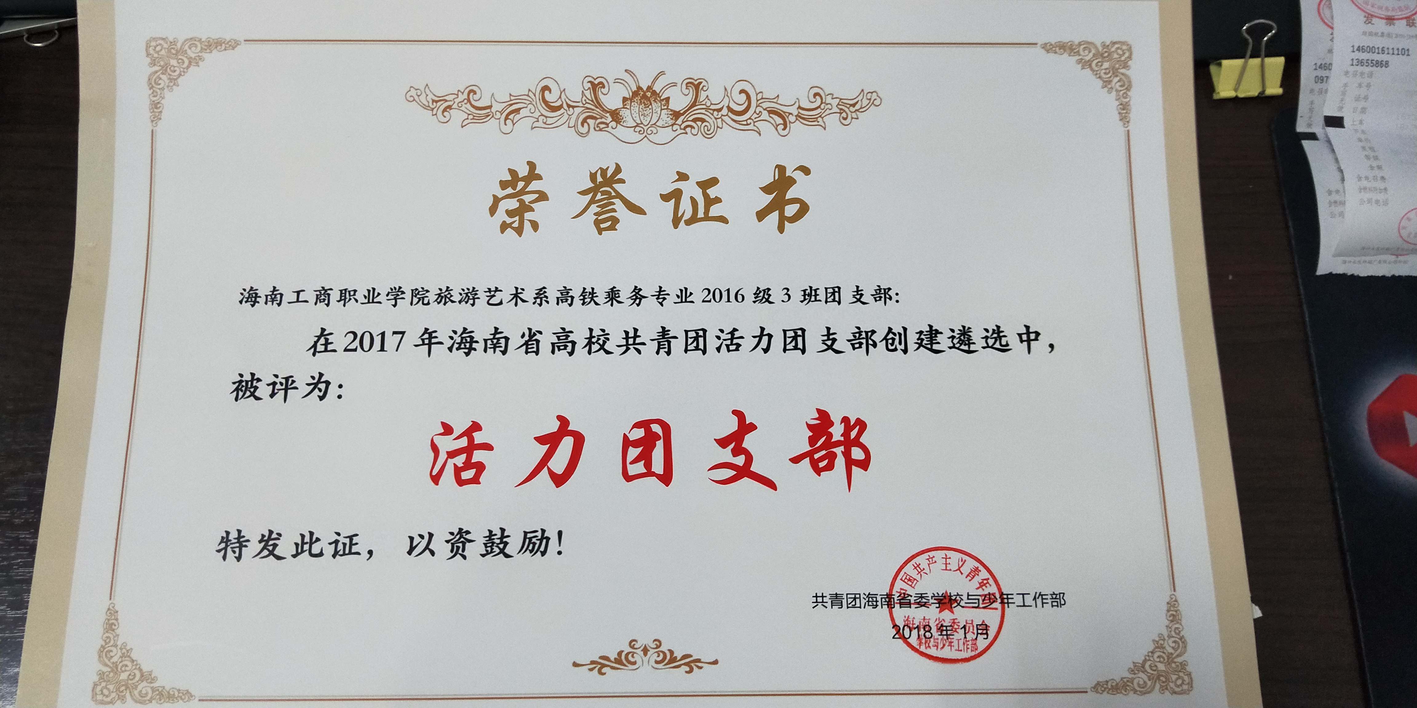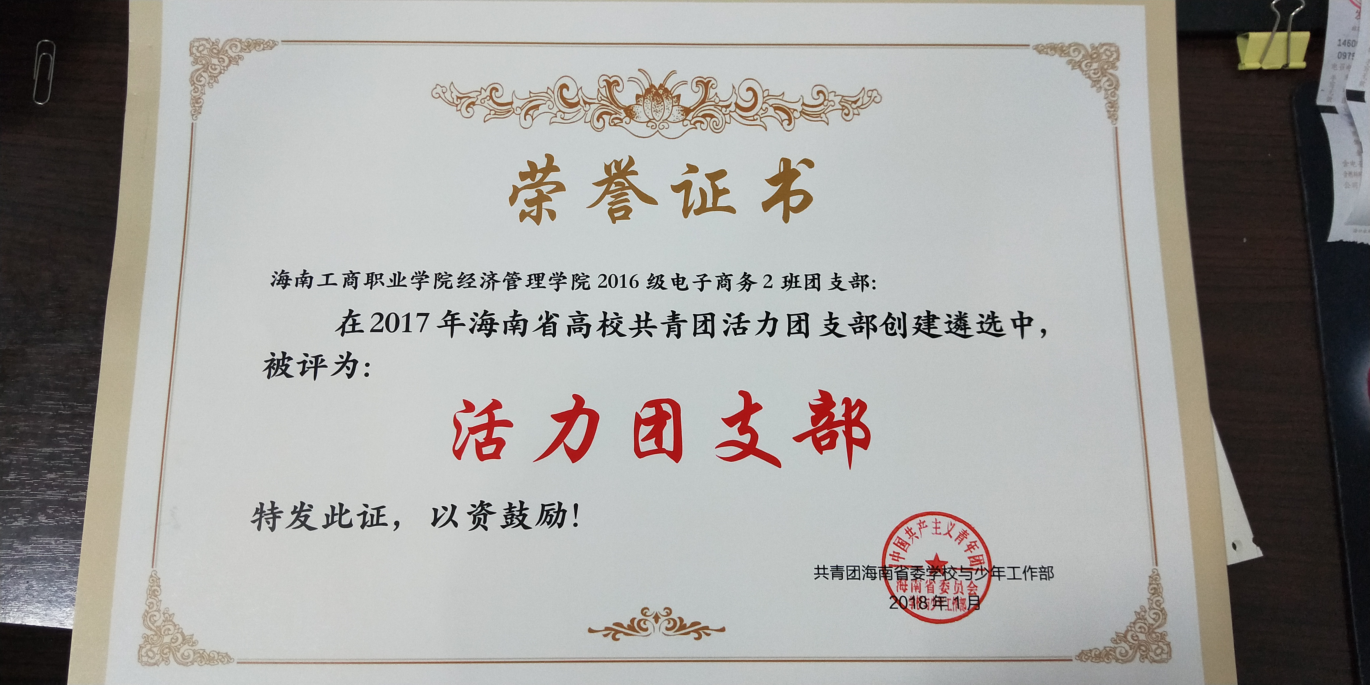 2017年秋,团省委根据团中央文件要求开展海南省高校“活力团支部”创建遴选活动。近日遴选结果揭晓,永利官网经济管理学院2016级电子商务2班团支部、建筑工程学院建筑设计(1)班团支部、旅游艺术学院高铁乘务专业2016级3班团支部和海洋学院2016级药品经营与管理2班团支部被评为2017年海南省高校“活力团支部”。