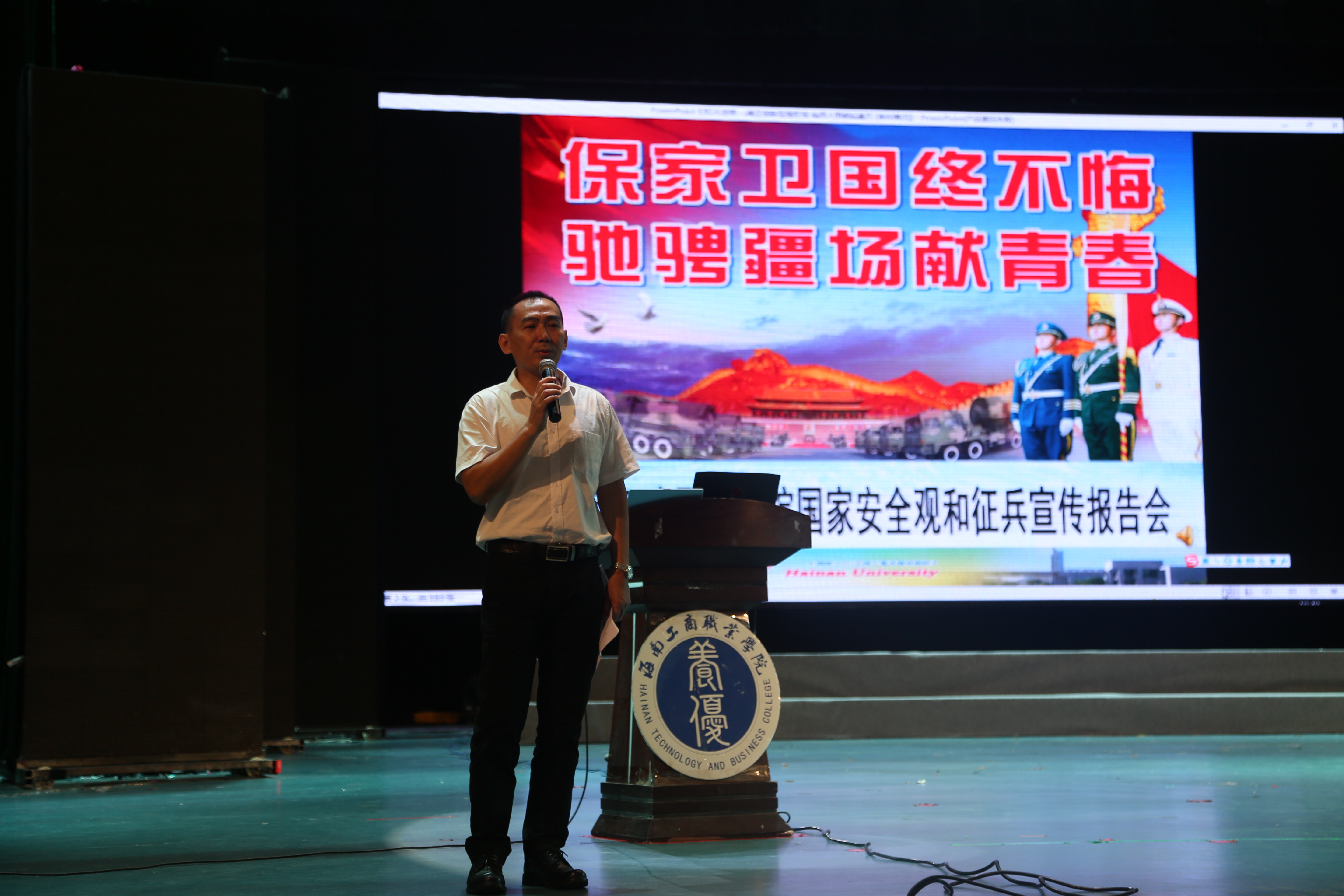 5月8日晚19:30在永利官网大礼堂举办了“确立创新型海权观,稳固大国崛起基石”专题讲座。本次讲座由海南大学黄海宁副教授主讲,琼山人武部政委史广斌、省军区动员局兵役组组长刘群应邀出席。讲座由永利官网党委书记黄恒主持,共1300余名师生共同聆听了此次讲座。