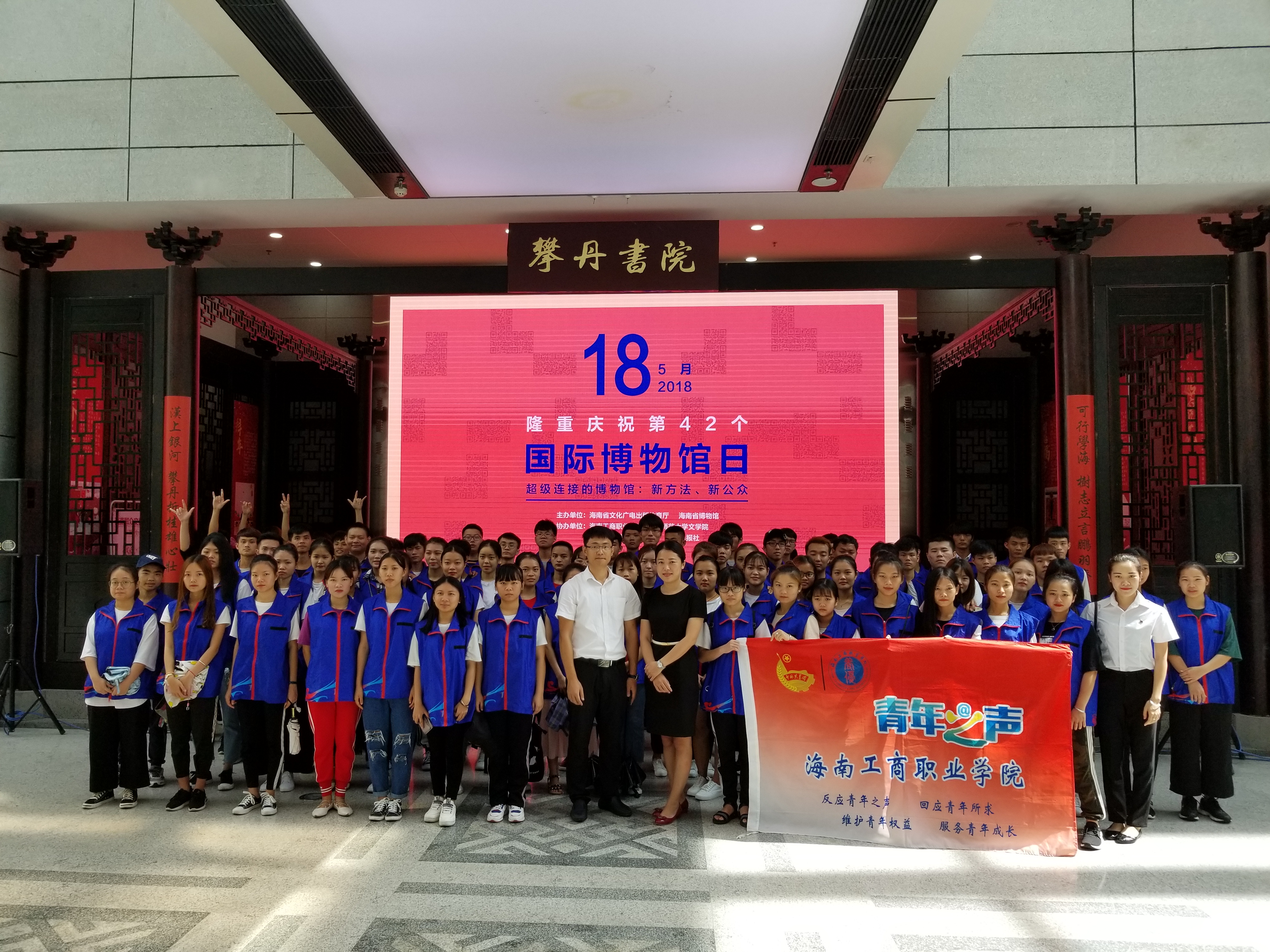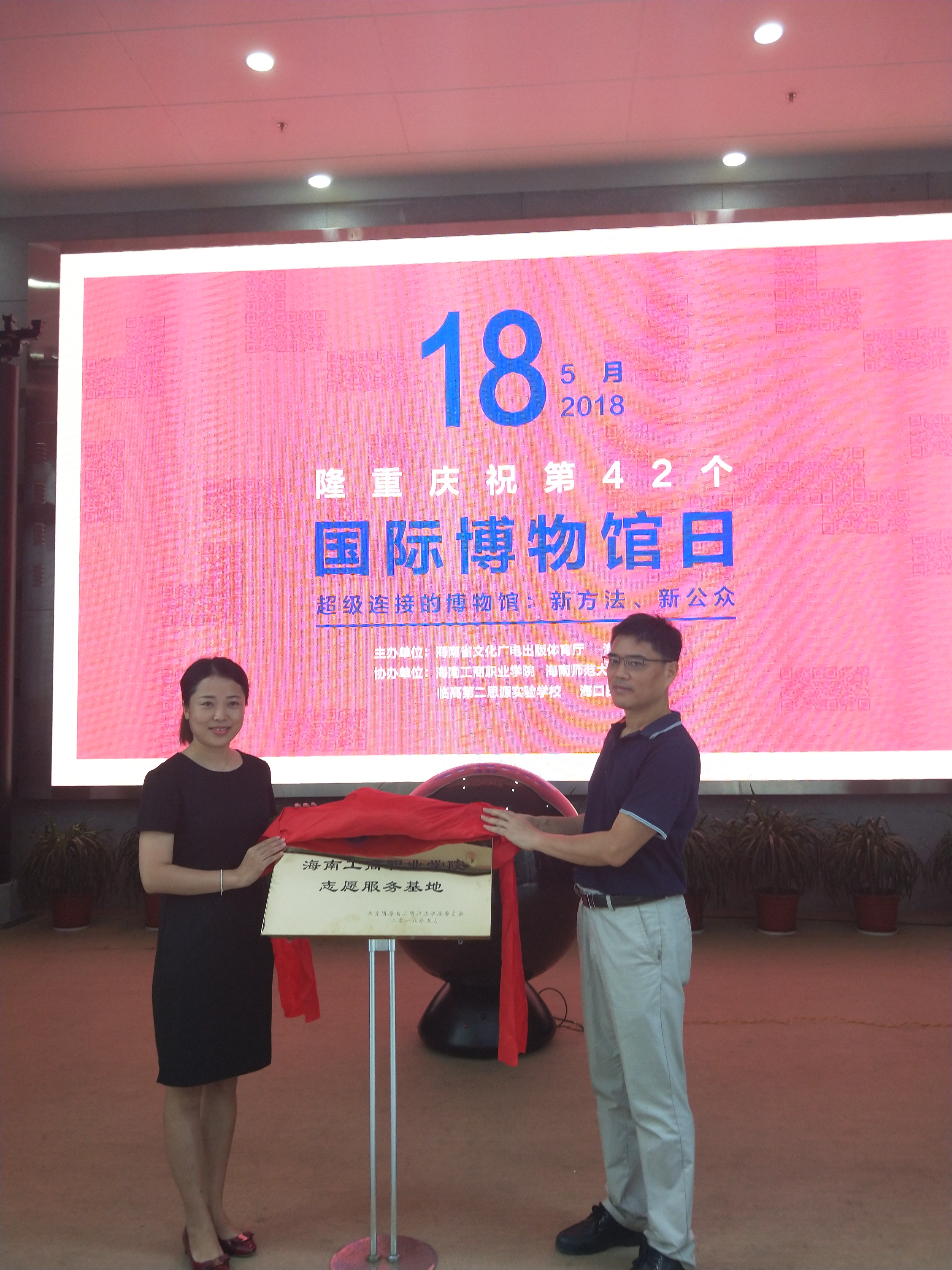 2018年5月18日上午9:30,永利14m在线登录志愿服务基地揭牌仪式在海南省博物馆顺利举行。永利官网副校长陈立丽、校团委副书记王鹏程出席此次活动,60余名志愿者代表参加了此次活动。
