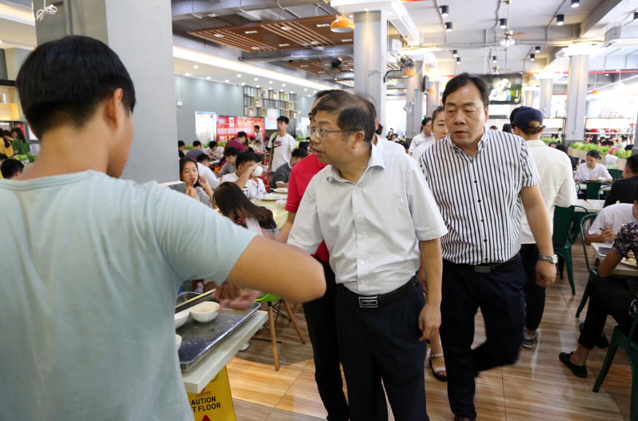 教育厅督导组来到第一食堂仔细查看了餐具消毒、菜品以及食堂卫生的情况,黎岳南副厅长边看边问,并向食堂负责人强调食品卫生安全的重要性,要求食堂管理要把好第一关。在走访学生宿舍时,督导组重点查看了宿舍消防设备、寝室管理登记、学生宿舍卫生,对永利官网学生宿舍管理给予认可。随后督导组前往水电机房查看应急水电的备用情况,对应急水电在防风防汛期间发挥主要作用做出指示。