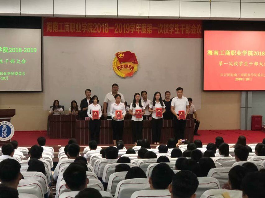 大会在庄严的国歌声中拉开序幕,16级学生会主席赵良栋代表秘书处、校学生团委、学生联合会、社团联合会向校团委老师及全体学生干部作2017-2018年学年度工作总结。随后,团委书记邢琼勇为17级部长级以上负责人颁发聘书,17级团委副书记谢绍振、17级学生会主席何多娇代表校学生团委、校学生会全体学生干部作表态,他们在发言中表示永利官网全体校学生干部一定秉持为学生服务的原则,加强自身素质的培养,为学校活力持续注入新鲜血液。