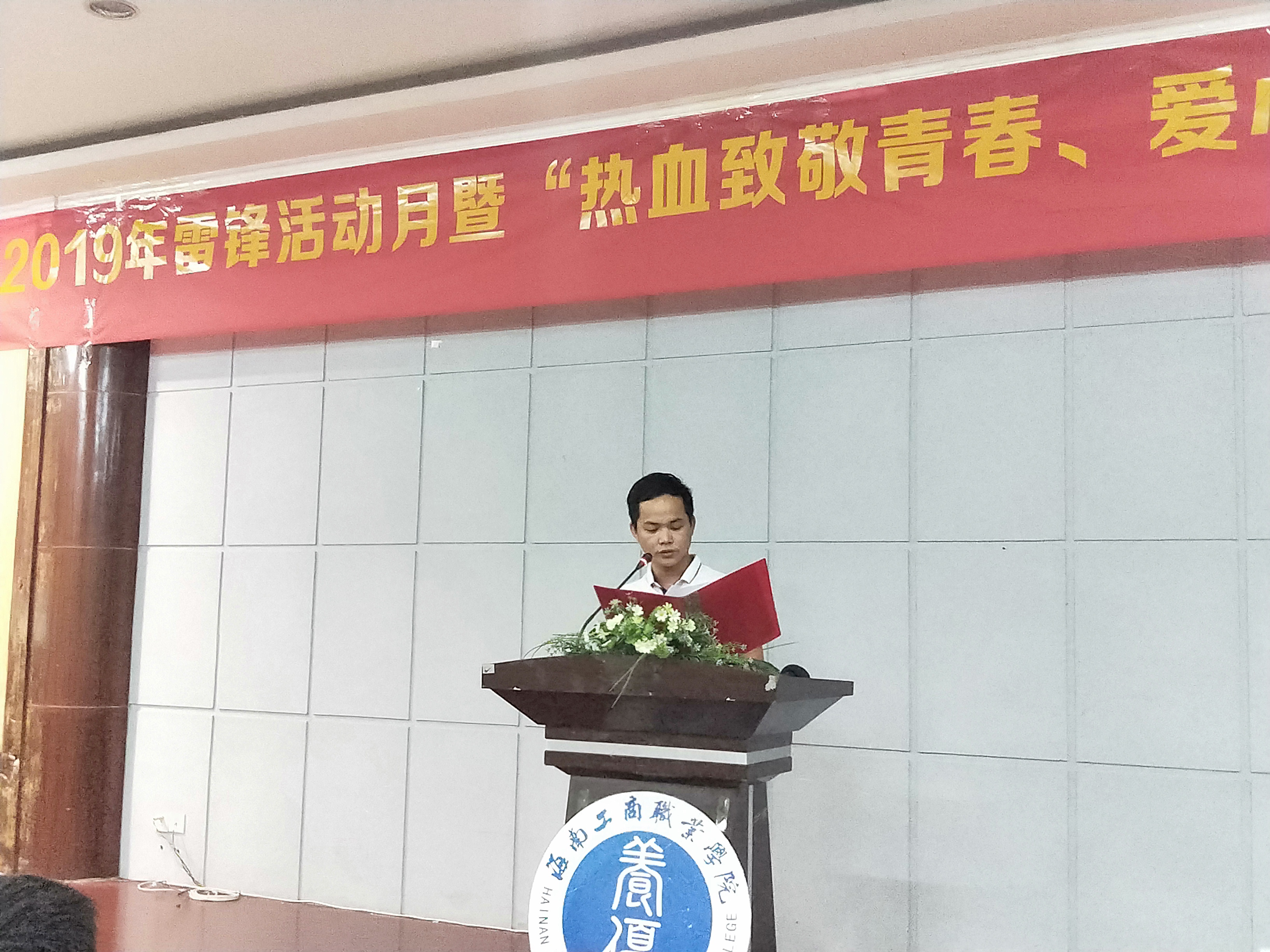 随后,邢琼勇处长对永利官网此次学雷锋主题活动月做具体安排。最后永利官网学生代表上台发表《雷锋伴我行》倡议。