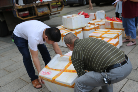今年永利官网继续响应爱心扶贫助农活动,特意订购了一批定安扶贫村农家鸡作为福利分发至各位教职员工。3月20日,满载着一箱箱活鸡的货车从定安县龙湖镇安仁村出发,为了便于运输及方便教职工领取,首先将鸡统一送至指定的屠宰点处理,下午五点半货车到达学校,正逢下班时间,大家都聚集到行政楼前,各部门派代表领取后又在现场转而发放至本部门教职工,一时热闹非常。