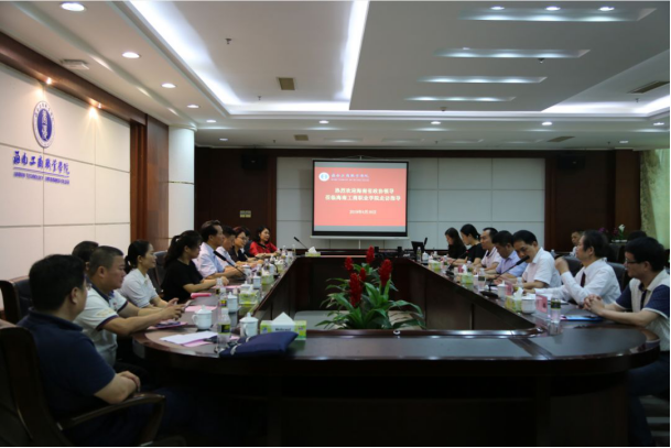 随后,考察团一行在会议室与学校相关领导进行座谈交流。校长符勇致欢迎辞,执行校长田巨平汇报了学校办学情况。双方进行了深入沟通交流。考察团对学校办学以来取得的成绩表示高度赞赏,并从科研申报立项、产教融合、校企合作、人才培养等方面提出了宝贵建议。