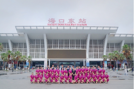 本网讯(通讯员 裴春媛)5月10日上午,旅游艺术学院2017级与2018级高铁乘务专业学生在裴春媛和毛丽晶老师的带领下赴海口与琼海两地的动车站开展动车乘务服务实训体验。
