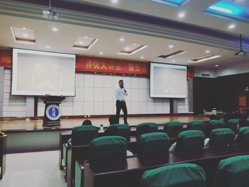 讲座中,曹昊楠老师用从为学会感恩、正能量生活、结交志同道合的朋友、年轻就是资本、如何充实自己5个方面,向在场同学分享了自己的生活经历、创业经历,希望同学们从他的经历中收获自信,把握好大学生在校三年时间,好好学习,做一个对社会有用的人。曹昊楠老师用生动的语言、饱满的热情赢得了同学们的阵阵掌声。