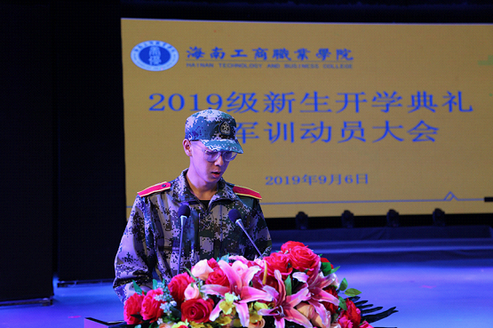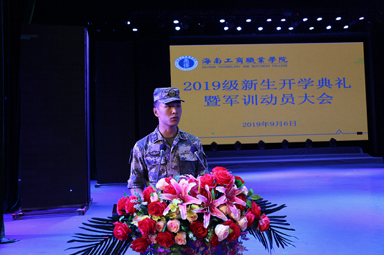 首先,黄恒书记代表学校对2019级全体新生表示热烈欢迎,并对琼山区武装部对学校军训工作的支持表示感谢。接着,新生代表刘旭峰和在校生代表毕艺玮进行发言。刘旭峰同学表示,希望全体新生能将大学作为人生新起点,树立主人翁意识,与学校共同发展,书写人生新篇章。毕艺玮同学从如何做一名优秀的大学生的主题出发,鼓励新生们遵守校纪校规,树立远大理想,明确学习目标,做一个尊重师长、团结同学、自强自立的大学生。永利官网教师代表、海南省优秀教师马士伟老师从珍惜时间、珍惜情谊、珍惜机会三方面对新生未来的学习和生活提出了期许。军训教官代表卢志强要求大家在军训中做到对自己高标准、严要求、服从命令、不拖拉散漫,认真地完成这“大学第一课”。