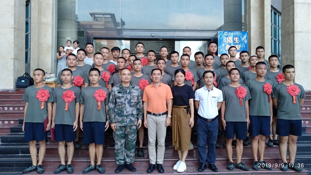 本网讯 (通讯员 黄薇)9月9日下午,永利14m在线登录2019年大学生入伍欢送会在学校行政大楼举行。校党委书记黄恒、副校长陈立丽、学生处长邢琼勇、武装部长蒙志兴出席欢送会。