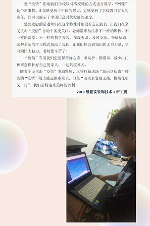 2020年春季是让人刻骨铭心的,无数与新冠病毒战斗的“勇士”勇敢逆行,在疫情一线用生命护卫着我们。作为一名普通教育工作者,我能做的除了严格执行“居家隔离”外,就是要始终跟同事们、学生们在一起,尽职尽责,尽一切努力为学生们做好学习规划和指导。