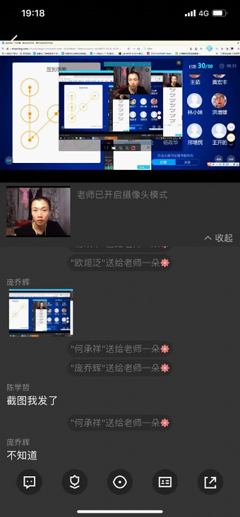 直播课堂学生在线情况良好。学生们按时签到,课堂积极回答问题,按时完成、提交作业。