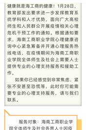思政课部心理教研室第一时间开通假期心理支持服务,不仅为学生的健康成长保驾护航,也将服务范围扩大到社会,为因疫情而产生心理压力的社会各界人士提供免费咨询服务。