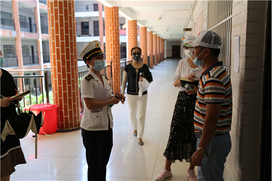 本网讯 (通讯员 潘颖)5月7日上午,琼山区教育局联合验收组来永利官网验收开学工作。联合验收组由区教育局副局长陈显雅带队,卫健委、消防、应急局、市场监督管理局等部门联合组成,对校园开学工作进行验收。代校长陈立丽、副校长罗爱玲、陈桄平及各职能处室负责人全程陪同。