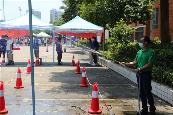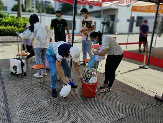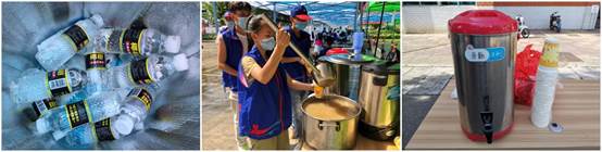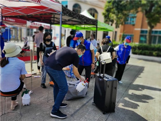 报到后,一杯清凉的菊花茶为同学们扫除了一路旅途奔波的闷热和劳累。为防暑降温,学校在校门口准备了雾化风扇、大冰块、水帘喷雾、冰镇矿泉水和菊花茶等,耐心的指引、关切的询问、充足的防护物资,无一不让返校的同学们感受到如家般的无微不至。