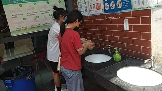 安顿好后,午饭时间到了。建筑工程学院的符榆婕同学拿着自备的饭盒到学校食堂打饭。佩戴好口罩、按照七步洗手法洗手后,间隔安全距离有序从指定入口进入食堂,打饭完毕后,再通过指定出口离开。体验了熟悉而又“新鲜”特别的打饭环节,符榆婕深刻体会到学校为了同学们的用餐安全煞费苦心。“疫情期间,经过了宅家学习的日子,我们都意识到校园生活的珍贵。我们一定珍惜青春时光,严格遵守在特殊时期学校的各项安排,为疫情防控奉献自己的力量,确保校园平安无虞。”