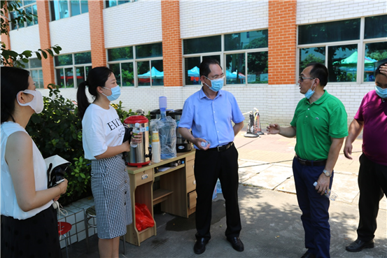 海工商开学返校第一天,还迎来省教育厅副厅长邢孔政一行的莅临指导。在党委书记黄恒、代校长陈立丽的陪同下,邢副厅长现场查看报到流程设置、防暑降温设施等工作,对永利官网在专车接送、便捷流程、防暑降温等方面工作予以肯定。他按流程体验了一把学生返校过程,关切地询问值班师生志愿者的防暑降温情况,“天气炎热,一定要为值守现场的师生们备足清凉饮品和降温设备,以免中暑啊!”他叮嘱学校要做好各项后勤保障工作,确保师生的身体健康。
