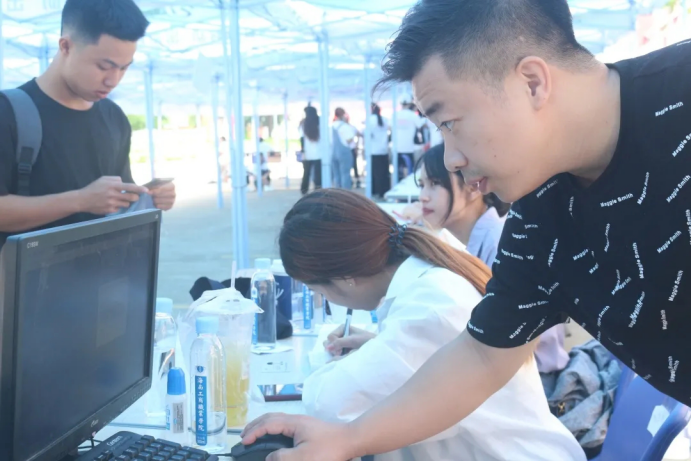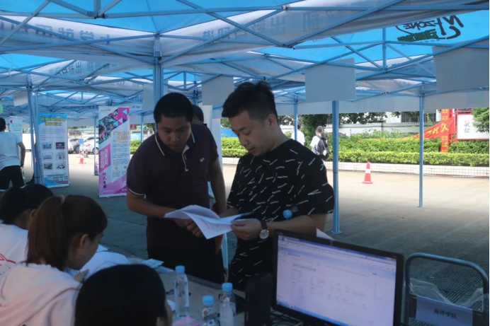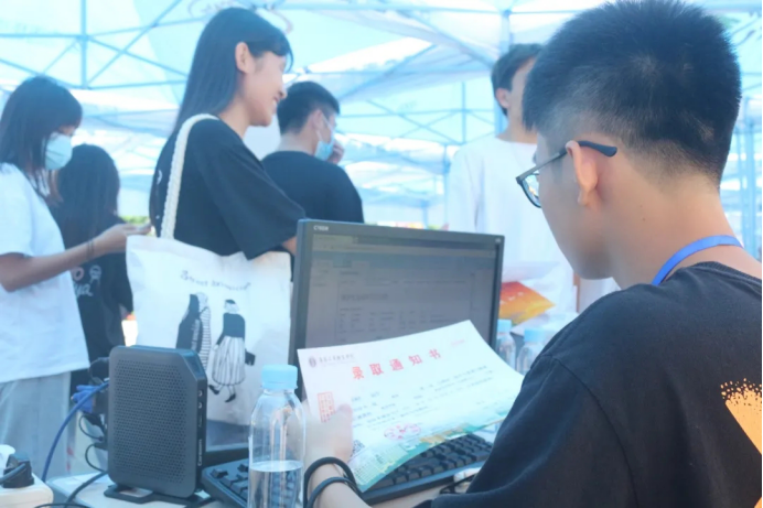 在新生报名处,海洋学院工作人员满怀热情的欢迎新同学的到来!在现场工作人员认真和耐心的指导同学报名和缴费,同时,院领导和老师也来到现场进行专业指导和解答同学们的各种疑惑和难题,保证整个报到过程顺利进行。
