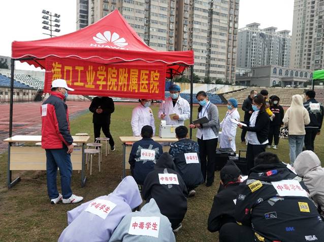 本次演练以海口工业学院(模拟)学生在食堂就餐发生疑似食物中毒事件为背景,对食物中毒事件应急指挥、现场流行病学调查与卫生处理、现场食物中毒应急处理等三个模块进行工作流程演练。演练围绕事故发生后,及时处置,逐级上报,启动食品安全应急预案Ⅳ响应,患者救治,事故原因调查分析,维稳安抚及事故响应终止等环节,采取实景设置、实人参演、实装操作等方法进行。