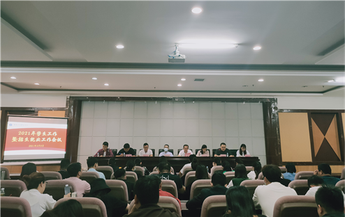 本网讯(通讯员 倪小凤)3月5日上午,永利官网在图书馆报告厅召开2021年学生工作暨招生就业工作会议。党委书记黄恒,副校长陈桄平、党委副书记刘骞出席会议,各学院书记、辅导员、招生就业办、学生处全体人员参加会议。