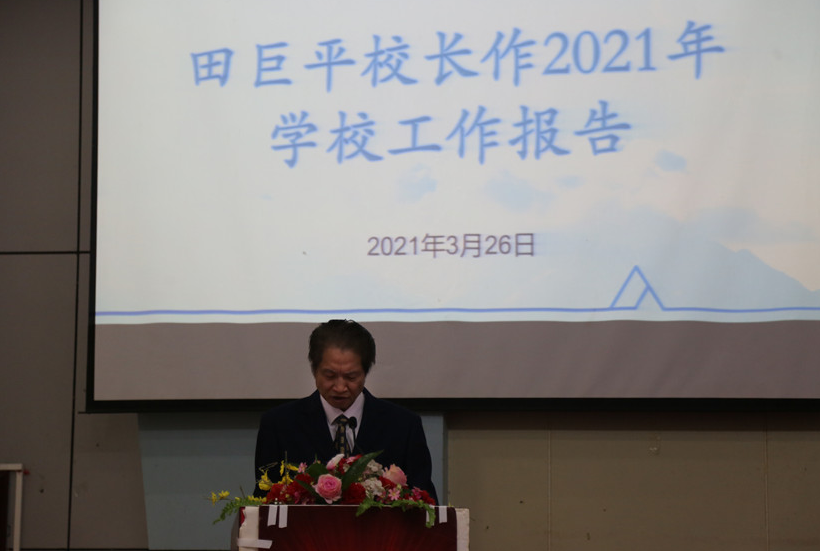会上,校长田巨平代表学校党政领导班子作学校2021年工作报告,报告以“抢抓机遇,蓄势谋远,谱写学校“十四五”发展新篇章”为题,总结回顾学校2020年的工作成绩,并对2021年学校重点工作进行部署。