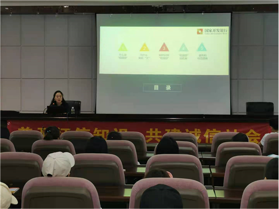 讲座中,唐小淇老师以视频和课件的形式,从成因、危害、如何防范等多角度详细讲解了“校园贷”这种非法贷款行为。谢华荣老师全面解读了国家信用助学贷款这一合理合法的贷款方式。两位老师的讲座相得益彰,从正反两个方面宣传国家政策,普及征信知识,既引导学生树立正确的消费观,又提醒学生加强自我防范意识,警惕金融陷阱。