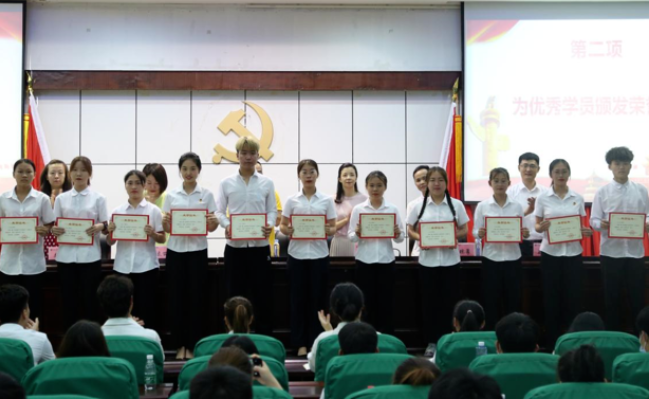 结业典礼上,党委委员、副校长陈立丽宣读了《中共永利14m在线登录委员会党校关于表彰第20期入党积极分子培训班优秀学员的决定》。经过结业考核、课程考核、综合评选等环节,本次培训班共产生优秀学员26名,与会领导为优秀学员颁发了荣誉证书。随后,优秀学员代表孙泽龙发言,他分享了党校培训的收获与体会,表明自己将不断加强学习,以合格党员的标准严格要求自己,不断向党组织靠拢。