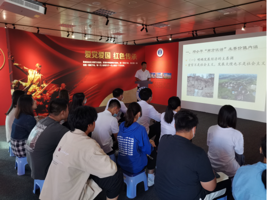 专题党课《邓小平南方谈话》由机关直属第三党支部书记潘小峰老师主讲。潘书记从邓小平“南方谈话”价值内涵和重要意义两个方面进行讲解,带领广大师生深刻回顾那段历史,了解邓小平南方谈话是把改革开放和现代化建设推向新阶段的又一个解放思想、实事求是的宣言书,不仅对即将召开的党的十四大具有十分重要的指导作用,而且对中国整个社会主义现代化建设事业具有重大而深远的意义。