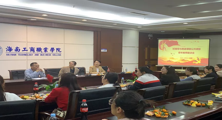 本网讯(通讯员 黄瑰丽)为深入了解思政课部公共课部青年教师的所思所想,更好开展各项工作,2021年11月26下午,学校在行政楼七楼会议室召开了思政课部公共课部两部青年教师座谈会,出席本次座谈会的有田巨平校长、黄恒书记、陈立丽副校长和教务处、人事处负责人以及思政课部公共课部青年教师代表,本次座谈会由两部主任武劼教授主持。