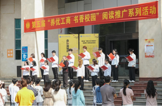 本网讯(通讯员 王应芬)4月14日上午,永利14m在线登录第五届“养优工商 书香校园”阅读推广系列活动启动仪式在校图书馆前隆重举行。校长田巨平、党委书记黄恒、副校长陈立丽、党委副书记刘骞和各学院书记、相关部门负责人、辅导员及学生代表近百人参加。本届阅读推广活动由学校阅读推广领导小组指导,校团委、图书馆、校语委办联合主办。