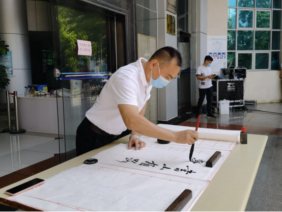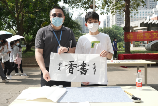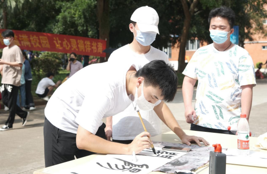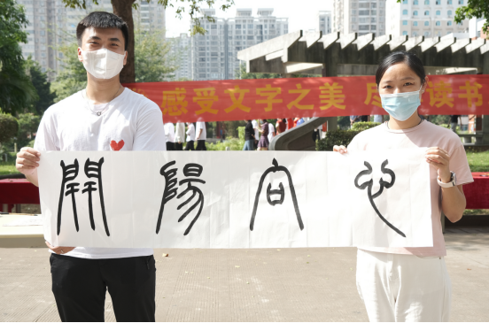 黄恒书记在现场为本届阅读推广活动挥墨题字:“书山有路 学海无涯”“读书破万卷”“书香校园”,字体遒劲、书法峻美,向广大师生传递了多读书的美好期许。学校书法社的同学纷纷现场提笔手书,展示了精彩的个人书法作品。