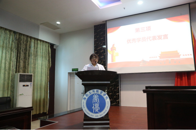党委委员、副校长陈立丽宣读《中共永利14m在线登录委员会党校关于表彰第22期入党积极分子培训班优秀学员的决定》。经过结业考核、课程考核、综合评选等环节,本次培训班122名学员顺利结业,共产生优秀学员14名,与会领导为优秀学员颁发荣誉证书。优秀学员代表劳健妍发言。