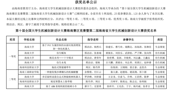 喜报I永利官网参赛学生获第二届海南省大学生机械创新设计大赛二等奖!