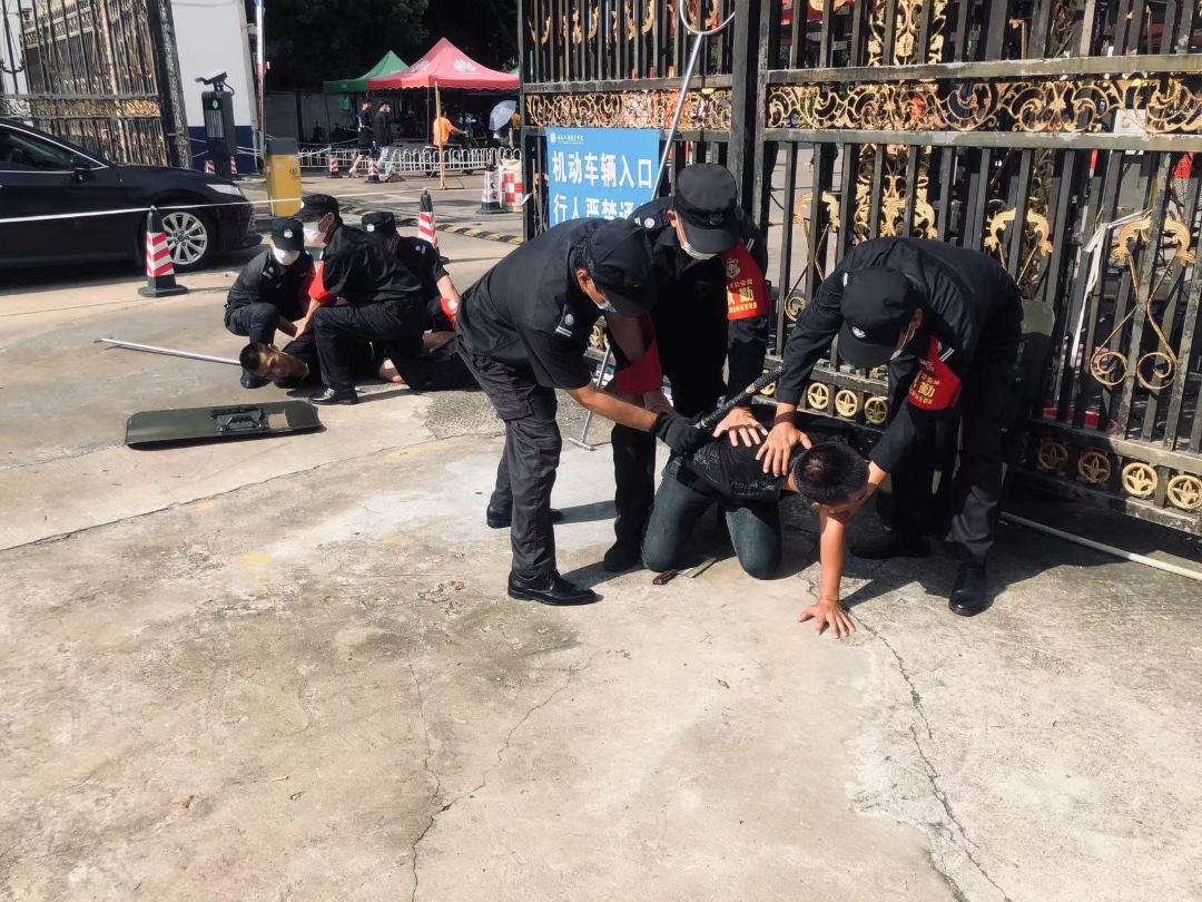 为提高学校安保人员处置突发暴力事件的能力,守护师生平安,营造稳定和谐的校园环境,5月25日,学校特邀请海口市公安局国兴派出所民警来校指导永利官网开展安保人员应急技能培训及应对暴力恐怖袭击事件应急处置演练。