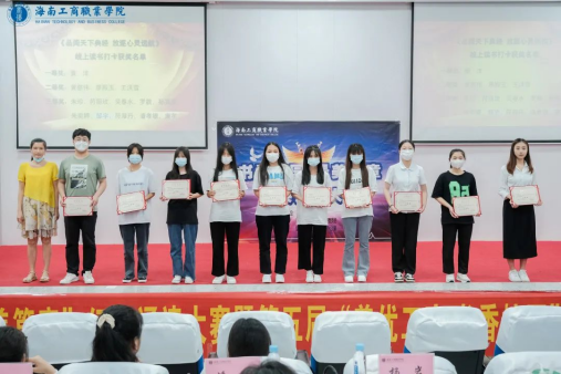 在本届阅读推广系列活动中,还有“品阅天下经典 放逐心灵远航”线上读书打卡评选、“读者之星”评选,“书香校园 最美篇章”经典诵读大赛评选、“优秀指导老师”评选等,当晚学校也对这些活动中产生出的优秀个人进行了颁奖,对各学院(部)进行了表彰。