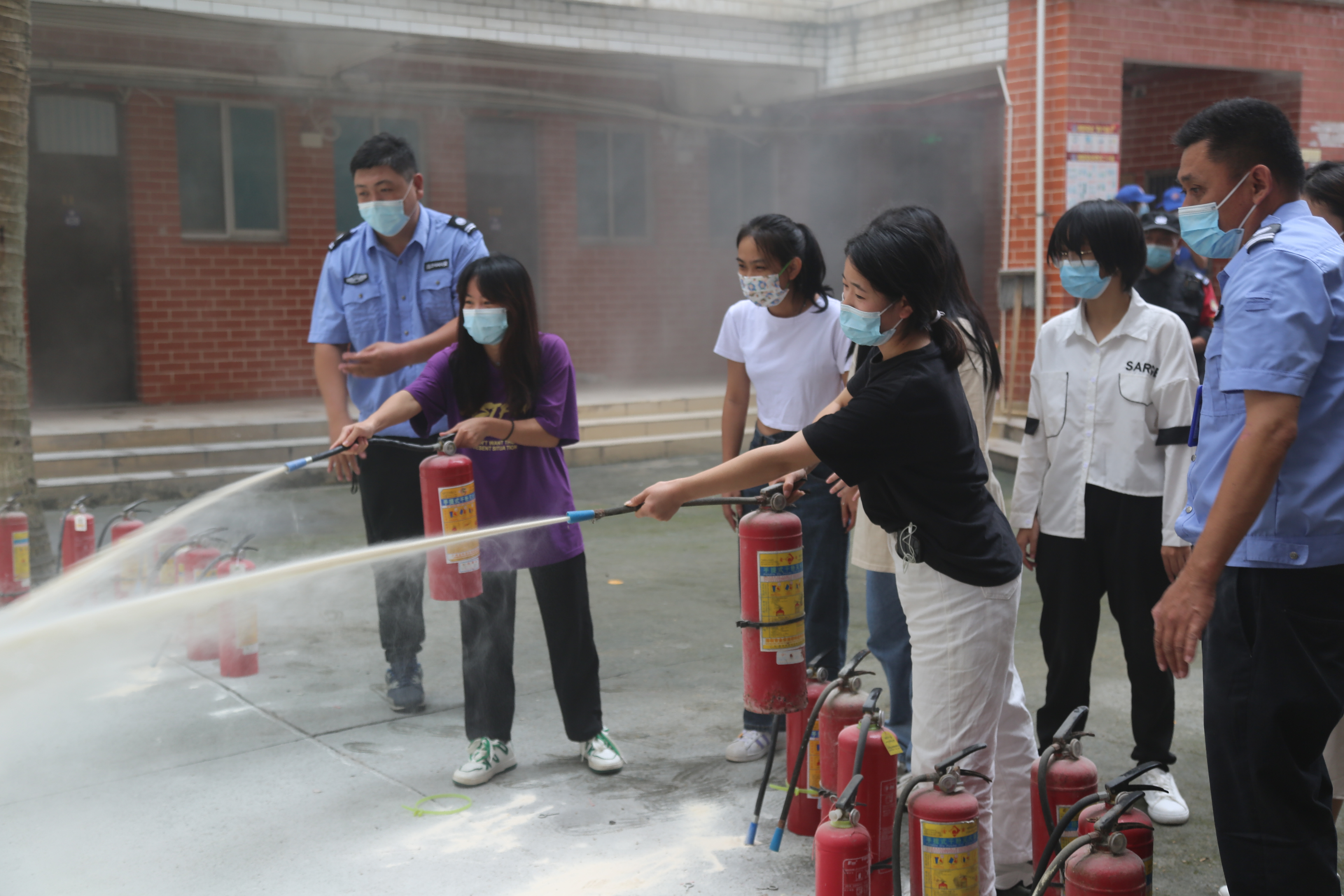 应急演练结束后,保卫处工作人员在现场讲解正确使用灭火器的方法,指导师生遇到火情,按规范操作使用灭火设施,协助扑灭火情。现场参加培训的广大师生积极主动,严格按照规定程序进行实操演练,现场气氛热烈。