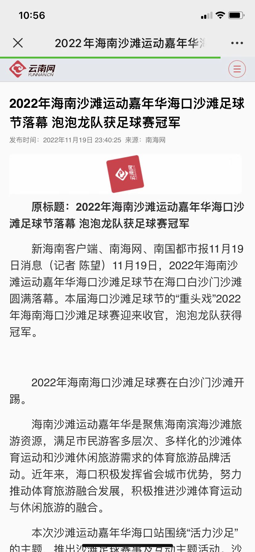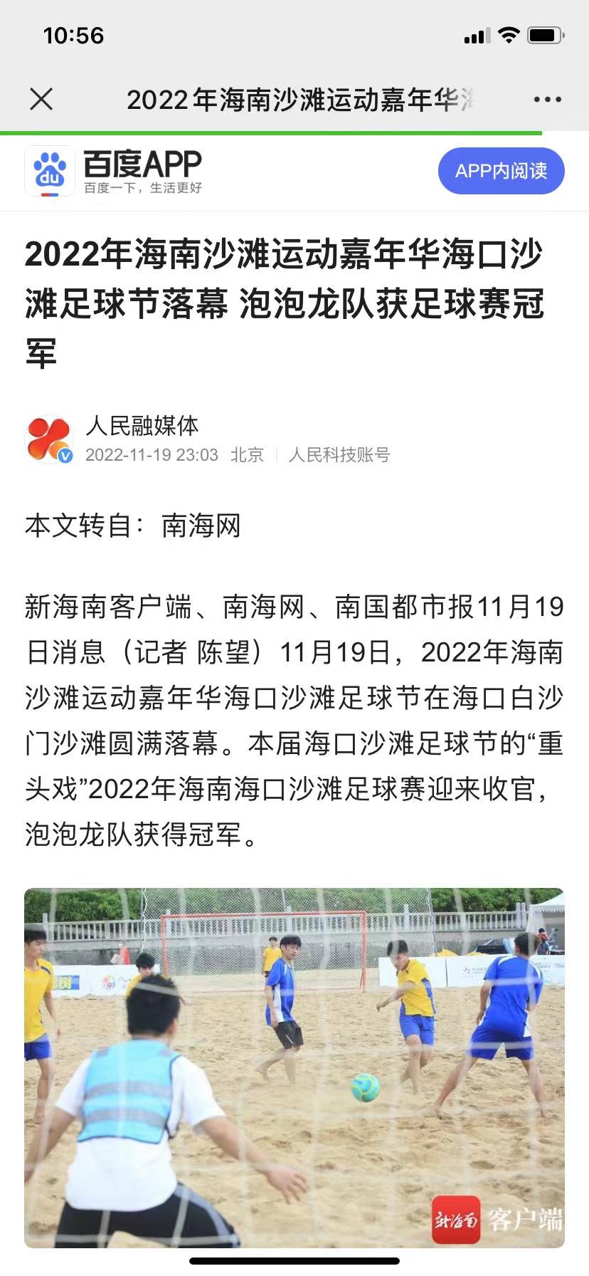本网讯(通讯员 洪 颐)11月19日,2022年海南沙滩运动嘉年华海口沙滩足球节在海口白沙门沙滩圆满落幕。永利官网优秀学子囊括了沙滩橄榄球项目以及沙滩足球项目两站赛事的冠、亚、季军!获奖事迹被南海网、人民融媒体等媒体报道。