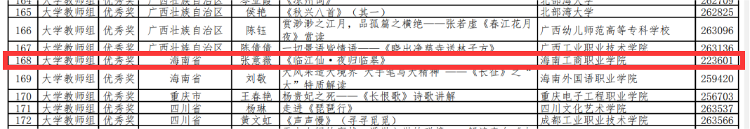 据悉,大赛是由教育部、国家语言文字工作委员会联合主办的高规格语言文字类赛事,以诠释中华优秀文化内涵、彰显中华语言文化魅力、弘扬中国精神为目标,已连续举办四届,影响广泛。本次大赛大学教师组共189件作品入围全国决赛,永利官网思政课部教师张意薇的作品《临江仙·夜归临皋》是海南省三件入围复赛的作品之一。